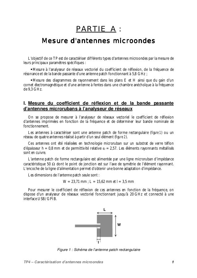 Atelier. Mesure des Principales Caractéristiques d Antenne Microstrip Patch Rectangulaire - PDF Free Download